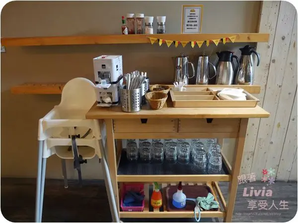 Panos Cafe的開水以及餐具、面紙都是自取,一樓二樓都有自助台,