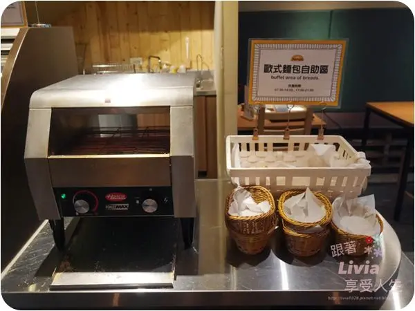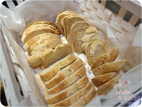 一大籃麵包提供給您享用,不過這是有時間限制的喔!板子上有註明時間。