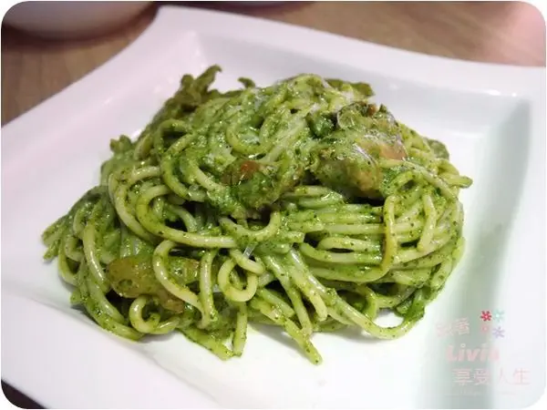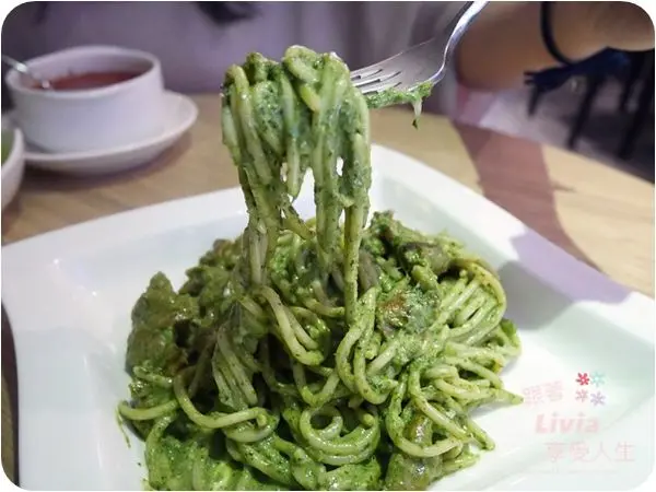 所以比較沒有那麼油膩,而迷迭青醬雞肉細麵,麵條的軟硬度適中,