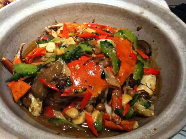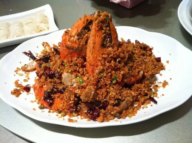 傳統的避風塘炒蟹,不外乎蒜蓉,豆豉和乾辣椒,再加入大量味素慢炸製成,但是這盤新避風塘炒蟹卻多了5種法寶.讓它不加味素也能很夠味! 到底是哪五寶呢? 讓老闆雖然不願意透露,但經過王子試吃過後,現在告訴你喔! 有蝦米,乾蔥,蔥花,菜脯和薑末! (新避風塘炒蟹 120元/兩)那天點了三道菜就吃了八千多元新台幣~不愧是頂級海鮮餐廳! 荷包要準備厚一點才行~ 值得一提的是,它的午間套餐1500元/人起