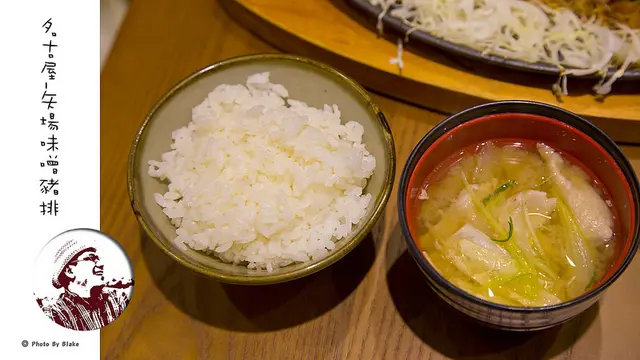 白飯是採用日本的越光米,口感帶有一點Q度,香氣也很足,偏乾一點,跟有沾上醬汁的高麗菜或豬排,恰恰好入口,白飯與高麗菜絲是可以續碗的。味噌湯裡的食材還滿多的,有高麗菜、豬肉片與蒜苗,帶有味噌發酵的酸味,還有一點點焦香,喜不喜歡就看每個人不同。