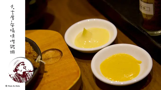 除了味噌淋醬之外,店家還會附上黃芥末醬,沾點來吃,多了一些鹹味還帶有一點點嗆,嗆沒那麼明顯,另外你也可以再加15元多美乃滋醬或蔥花,聽說風味會有更些許不同,店家是招待布雷克一碟美乃滋,味噌腰內豬肉吃起來頓時多了一點滑嫩感,感覺上多了一點點甘味,也還不錯。
