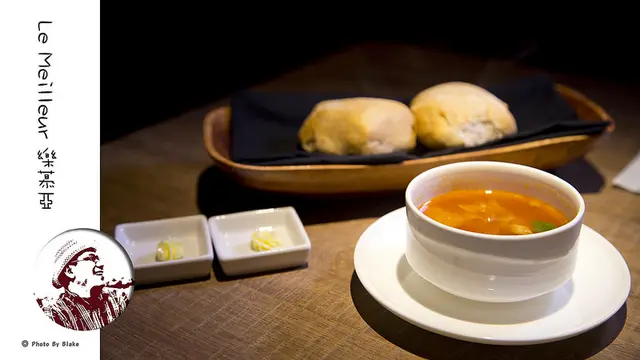 手工麵包是剛烤好就送上來了,用收撕開後還有其餘溫,不像法國麵包那麼硬脆,反而質地較為柔軟,內餡還包著少許的核桃,單吃就很香,亦能抹上一些奶油,一抹上去就被餘溫給融化了,帶點鹹度的奶油吃起來別有一番風味。