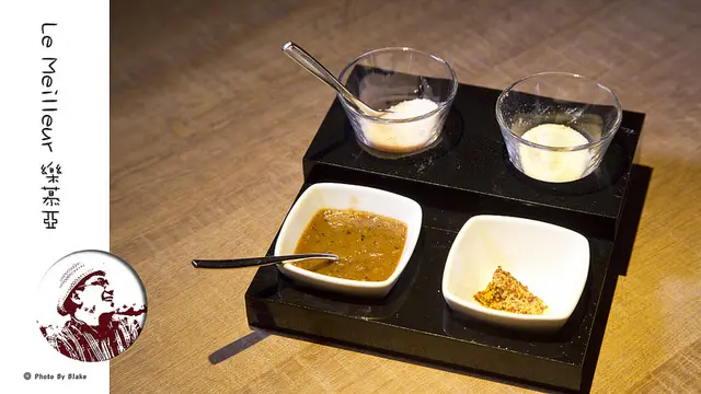 燻烤冷肉盤芝麻葉生菜沙拉,主要是芝麻葉、磨菇、蕃茄與生菜為底,鋪上為數不少的牛肉,沒想到沙拉裡用的牛肉會這麼一大片,而且切的還很有厚度,是現煎現切片的肋眼牛排,Le Meilleur好像都是以這樣子大份量為主,果然是很美式的餐廳。沙拉醬是用胡麻醬,布雷克之前很愛去costco買胡麻醬拌麵拌菜,會有一種香濃的芝麻味,在Le Meilleur的胡麻醬帶給牛肉有一種滑嫩的濃郁,比costco的胡麻醬還要不鹹一點,磨菇的生味很重,但也很特別裡面還有些水份。