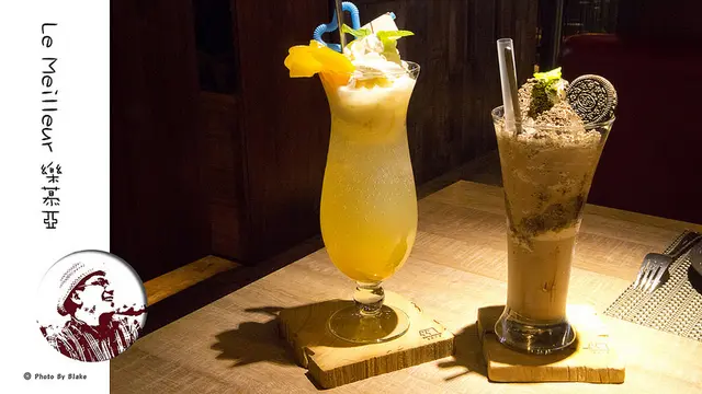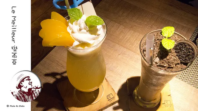 飲料的部份也是做得很奢華,一看就覺得今天會熱量破表,樂慕亞特調冰沙的脆片很有巧克力的味道,超濃的,吃多了OREO還是有點膩;蜜桃檸檬漂浮蘇打,喝起來就比較清爽一點,檸檬蘇打就像是在喝汽水,蜜桃與對今天的布雷克來說也是有點膩口。