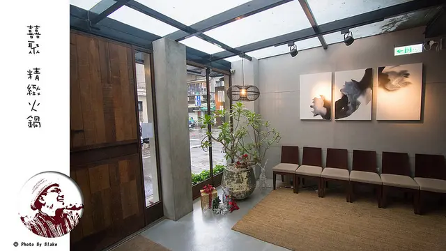 囍聚精緻鍋物位於捷運國父紀念館站1號出口,大約走個5分鐘的距離,離市民大道與華視也近,走路到松山文創園區也不用五5分鐘,可以約好朋友一起去看完展來這吃飯。囍聚精緻鍋物門口看起來很低調,我特別喜歡一進門的那個空間,光是灑落下來的光線,整個採光就很舒服,旁邊放滿一整排的椅子,這只是候位區,店本身就很夯,假日晚上來用餐,請務必先電話預約。囍聚的開始是幾個朋友在閒聊之間,談到想開火鍋店這個念頭,結果說著說著就這樣子堅持開下去兩年多了,一開始也沒有那麼順利,湯頭味道讓來用餐的食客沒有多大的驚豔,他們就努力的去調整去實驗,讓湯的味道有種獨門一絕。