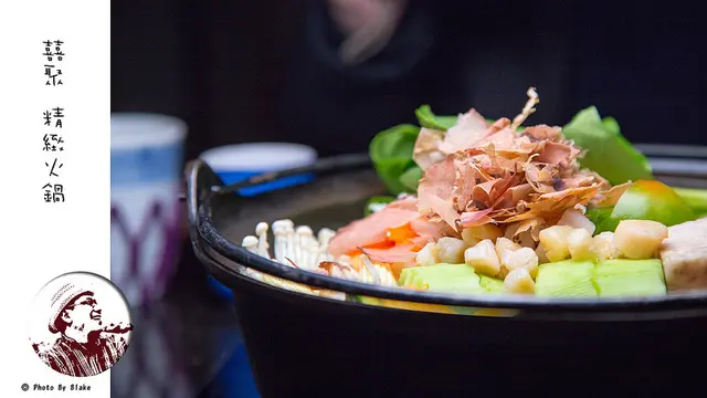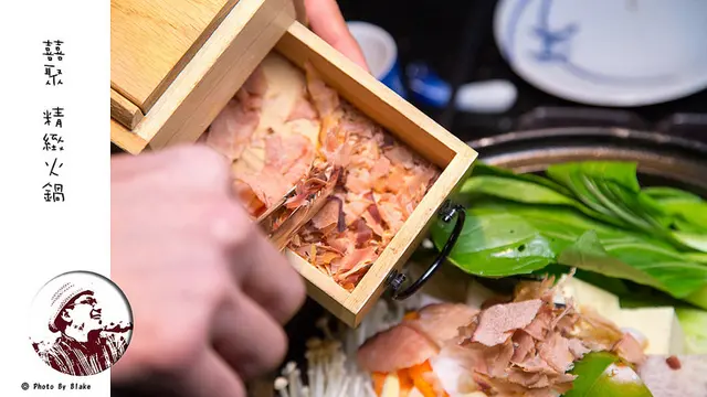湯頭是用老母雞雞軟骨與雞架子去熬,還加上了日本小干貝,光是看那小干貝放的量,就知道店家的湯頭很用心的,在火鍋開始加熱的時候,服務生會詢問是否加入柴魚片,讓味道更有層次感,這時會拿出木盒,將柴魚片加入,湯頭就是如此簡單,沒有其他調味,喝起來也很甘甜。