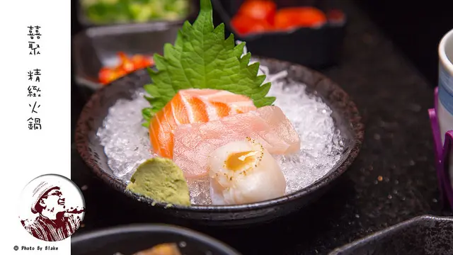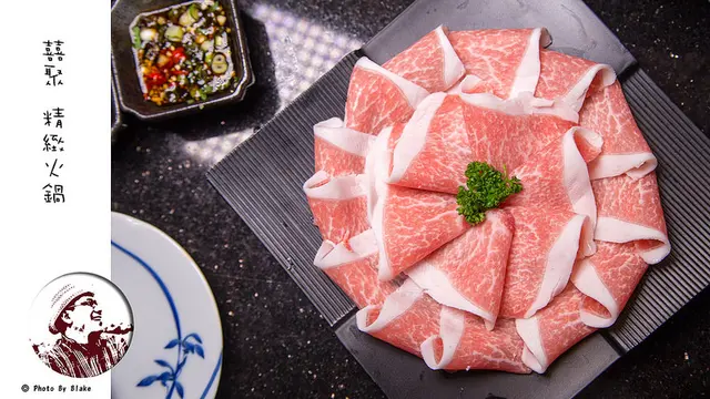 再來任何的海鮮食材講究新鮮,在菜單上還有一項無菜單料理的每日特選海鮮,這是固定二或四會去南方澳與崁仔頂去喊價批貨並與基隆的船隻配合所拿到的新鮮食材,所以每一天都不一樣,肉品的部份則是用上最好最頂級的,豬肉有匈牙利曼加利扎豬,還有伊比利豬與神戶盤克夏黑豚,牛肉的部份則是用最最近剛開放的A5和牛與美國的美國Prime牛肉,精緻火鍋可不是浪得虛名。服務上更是講究,雖然開方式的空間,卻用竹簾去隔開每一個用餐的餐桌,讓來這吃火鍋的食客還是有個人隱私空間,另外餐廳還有四個包廂也有圓桌可以預約,企業包場或公司舉辦尾牙,這裡也很方便,廁所的部份還有放著漱口水及牙線棒,洗手乳竟然還用上茶籽堂,可見店家的講究之處。