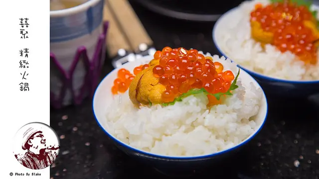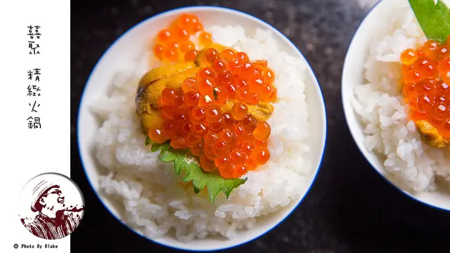 主食的部分有台灣芋香米與日式烏龍麵可以選擇,當然還有可以加價NT$250元,升級成鮭魚卵海膽飯,目前是馬糞海膽產季,所以今天吃到的就是馬糞海膽,整塊的海擔膽就躺臥在白米飯上面,接著還灑滿了鮭魚卵,每一口都能吃到大海的恩賜。