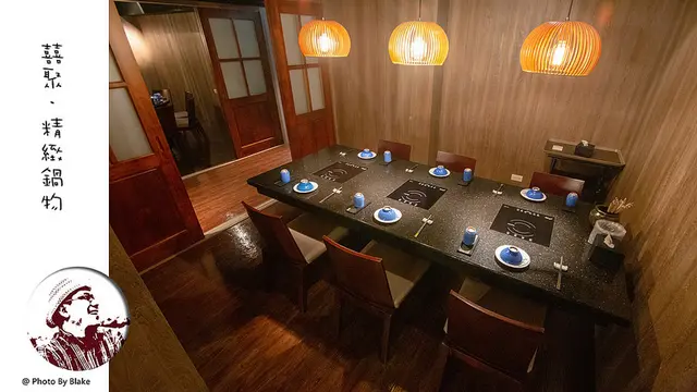 位於捷運國父紀念館站的囍聚精緻鍋物,從1號出口走大約走個5分鐘的距離,門口看起來很低調,掛著兩個大紅燈籠,很像是在來到大宅門用餐,一走進門就能看得到候位區,餐廳本身就很熱門,建議用餐前先電話預訂。服務上很講究,用竹簾去隔開每一個用餐的餐桌,保留其隱密感,另外還有四個包廂可以用來做為企業包場、尾牙場地或招待重要商務客人,廁所洗手乳是用知名的茶籽堂,另外還有漱口水及牙線棒,整個服務都很不錯。