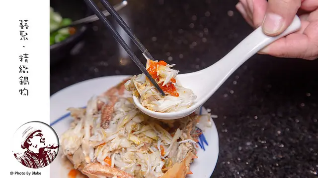 螃蟹的部份煮好後也,也是可以請店員協助將肉取出,我光是重新再看這些照片,都想吞口水了,蟹肉鮮甜且細緻,然後還可以加上蟹膏蟹黃一同食用,整個很濃郁,超好吃的,蟹腳的肉也是很甜。重點剛剛用這隻沙母煮的螃蟹火鍋湯底,整個超甜的,會讓人多喝好幾碗高湯。