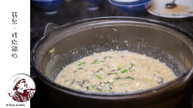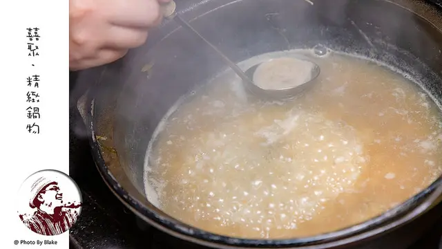 在囍聚吃海鮮鍋最後一定不能錯過這個完美的句點「雜炊」,利用剛剛將螃蟹火鍋煮完後鮮度爆表的湯頭來煮粥,就是將整個海鮮的精華來熬粥,而且還是免費提供的,湯頭要先處理過,把原本的食材撈起來再濾過雜質,讓火鍋湯底只有清湯,避免不必要的雜質與味道去破壞粥的味道。