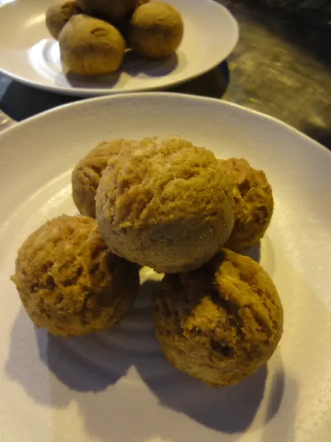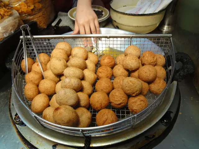 讓人愛不釋口的就是每粒15元,現炸現賣的炸芋丸! 外皮酥脆 裡頭的芋泥香軟綿密, 讓吃過的人都上癮!