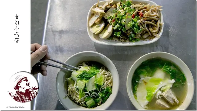 東引小吃店就開在松山菜市場裡,早上11點開始營業,剛好是菜販剛結束早上的販售,正想用個午餐的時候,接著就沒休息的開到凌晨4點,這時菜市場的攤販正好隔了一天要來擺攤,這開店的時間真的好玩,就因為晚上開得晚,所以在夜裡想吃個麵填一下胃,來這準沒錯。這主要賣的就是麵食,跟大部份的「馬祖麵」一樣,麵條跟一般常吃到的油麵與陽春麵不同,布雷克覺得這麵更有勁,攤前滿滿的魯味更是配麵的好友,對了,一直沒提老闆的故鄉就在東引,因此才取其店名。