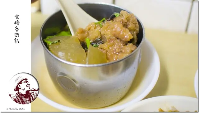 布雷克一直覺得金峰魯肉飯的湯品都還不賴,之前有點過人蔘雞,裡面就有一整隻的雞腿肉,而且還不是只有一塊肉,整個用料超豐富的。今天布雷克點的排骨酥湯也是不惶多讓,炸好的排骨與冬瓜也是滿滿一盅,金峰魯肉飯的湯品,大多都是用鐵盅裝好,客人點的時候在用蒸的,然後下面放個碗就上桌了,一整個熱呼呼的。