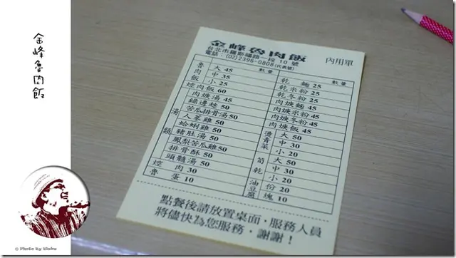 裡面的餐點當然是以布雷克最愛的魯肉飯為主,還有肉焿聽說也是一絕,布雷克是有吃過一兩次,但不是布雷克最愛的口味,還是喜歡傳統一點的肉焿,就像北門蒜味肉焿蒜味重一點,另外金峰魯肉飯的湯品,布雷克也還滿推崇的,有機會真的要來試試看。
