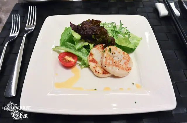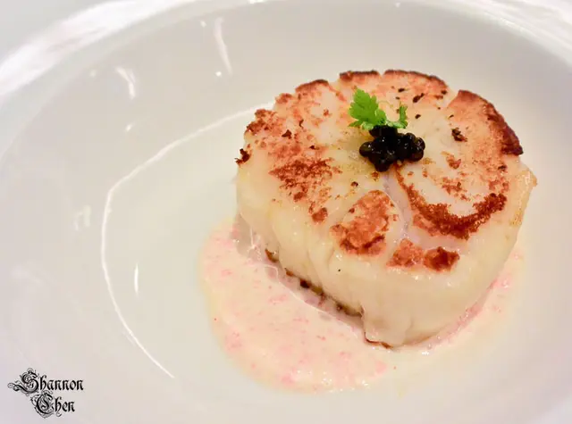 干貝和我的沙拉上干貝一樣新嫩美味,上方的魚子醬我只吃的出一點點鹹味和魚味,因為一點點在上方就也不太好吃的出味道!!