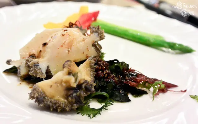 說真的看到活生生的鮑魚在面前蠕動...不是很舒服,不過吃起來一點腥味、怪味都沒有,有點向杏鮑菇在硬一點點,QQ的!!