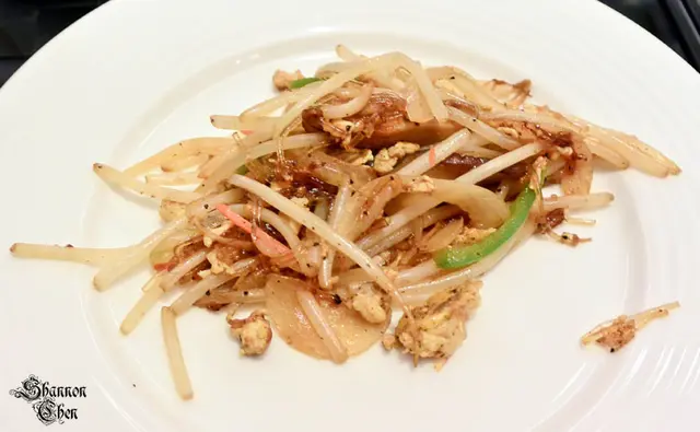 吃完了飯才送上的豆芽菜炒冬粉?!由於同桌的某女說風一直將油煙吹向她,所以這菜就不在我們前方現做...在別的地方製作,