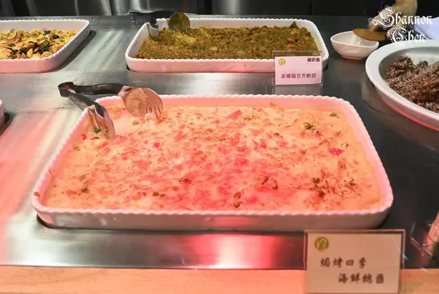 配菜-酸豆橄欖洋薯沙拉、焗烤四季海鮮總匯、紅粉佳人貓耳麵,總覺得洋薯沙拉和四季海鮮總匯稍微有些類似,皆有馬鈴薯,口感綿密味道結合了醬汁
