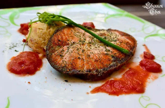 整體煎至酥脆,鮭魚的口感不錯,店家之後可能會將此主餐改為義式作法的鱸魚料理!