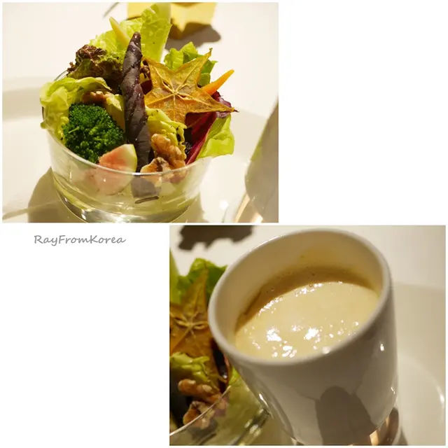 [沙拉 湯 - 野菜佐溫明太子醬汁 / 經典洋蔥湯]