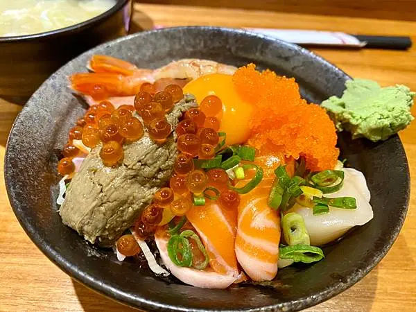 味噌湯就有些獨特了,看起來加了很多洋蔥還有蛋花,我因胃食道逆流的關係已經很久不敢吃洋蔥了,所以這碗湯我一口也沒喝,隔壁的客人倒是喝得津津有味,想必是很可口。