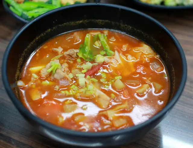 像是羅宋湯但出奇的清淡,有馬鈴薯塊、牛肉片,酸度主要來自於番茄,湯頭清甜順口