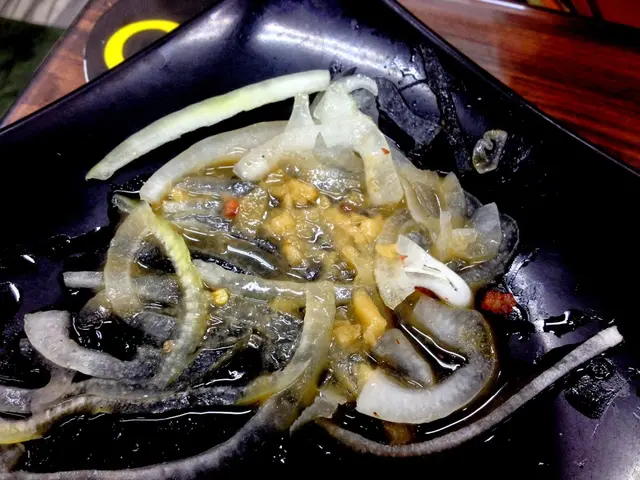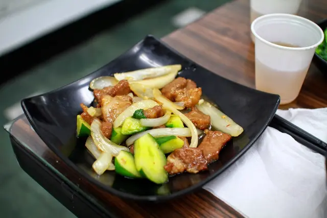 小黃瓜清脆爽口,洋蔥不辣微甜,不知道是淋上麻油味道特別地滋潤爽口