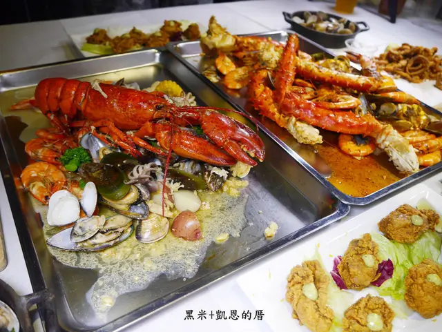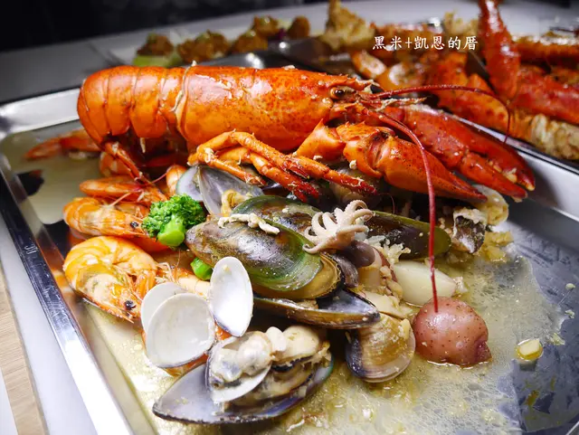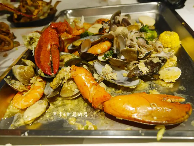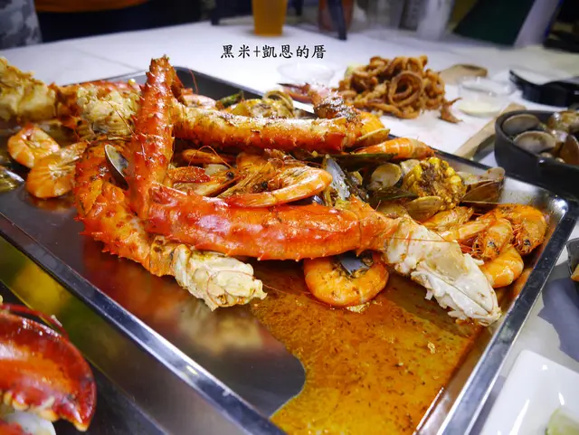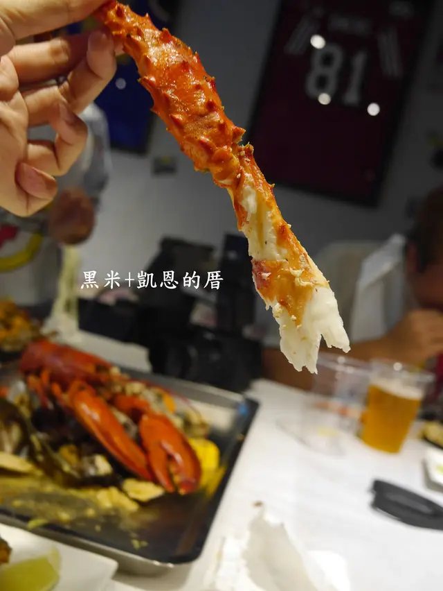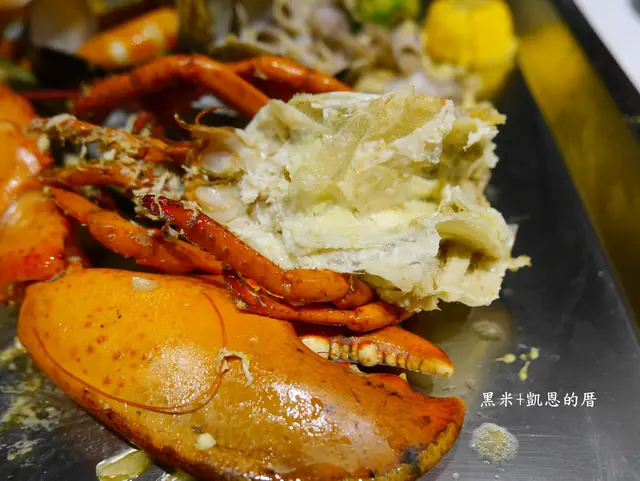我們分成兩盤,波士頓龍蝦盤是蒜味奶油,帝王蟹的則為蝦老爹特製調味醬