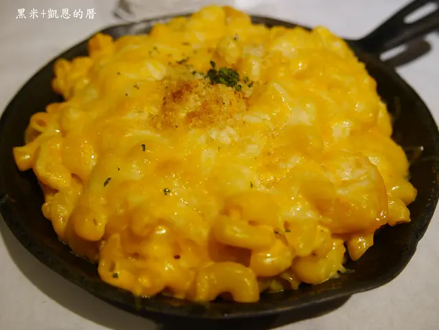 金黃的通心粉,加入很多蝦子、起司,從底下一挖會有牽絲的起司