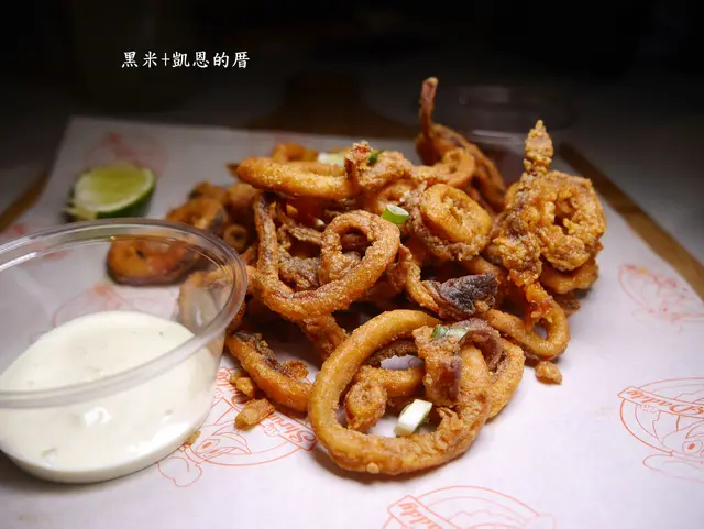 上方是九層塔香蒜醬作為提味,享用美式料理就是要吃炸物啦