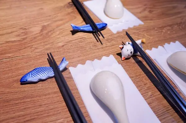 很喜歡這裡的筷架,是不是超級可愛的!!!!!小貓咪跟小魚造型的筷架~再度與店名「肥猫漁夫」呼應~