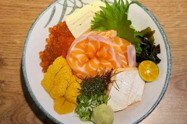 所有漁獲都很新鮮~鮭魚生魚片相當厚實,鮭魚卵一粒粒的在嘴裡爆開,炙燒鮭魚肚富含油脂入口即化,海膽更是鮮甜,是高檔的加拿大海膽!吃得到海的滋味!每一口都可以感受到他的真材實料!