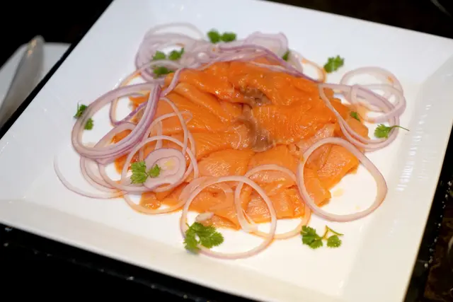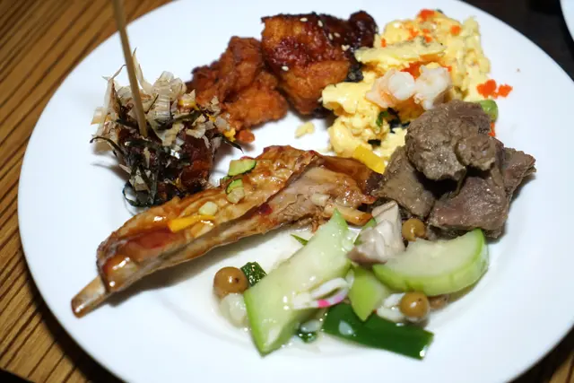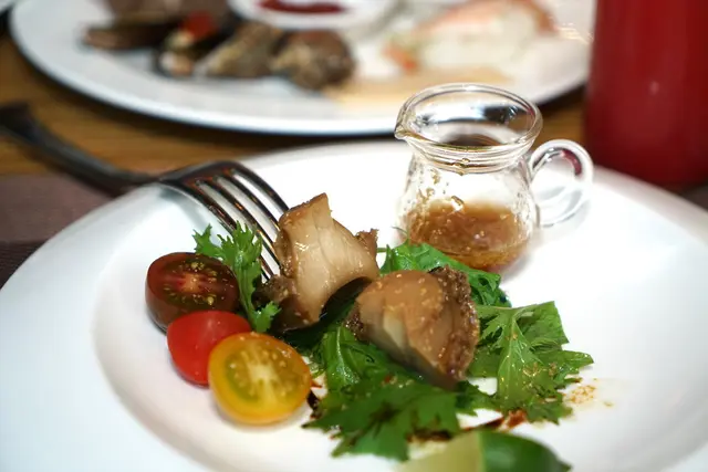肯尼不想睡餐盤,吃個5盤剛好而已(搭配五味醬與新鮮檸檬、一口吞下太補了)