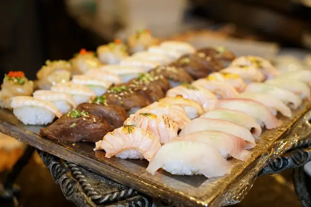 握壽司、生魚片、九孔鮑魚、淡菜、小捲、炙燒牛肉握壽司