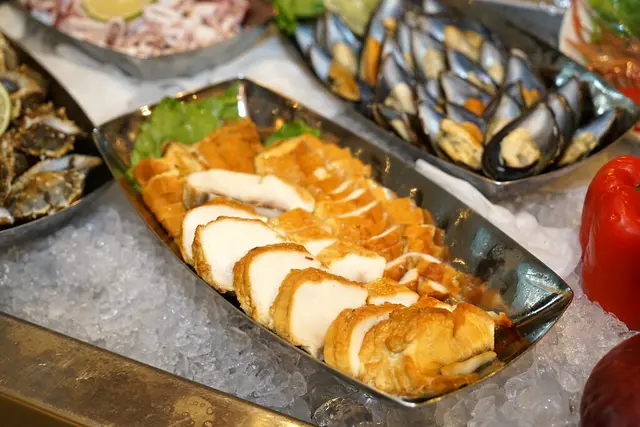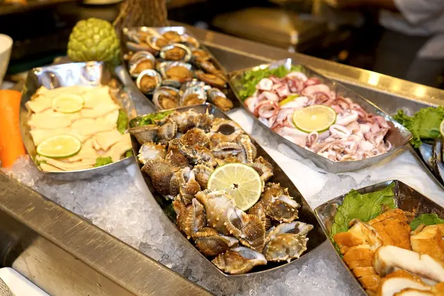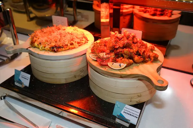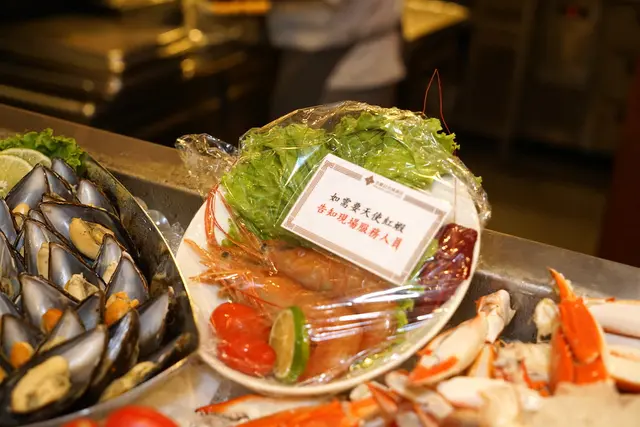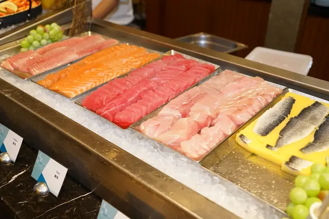 生食區(生魚片、手捲、握壽司、川燙海鮮)、牛排、烤雞、肋排、現煮料理(小捲麵、澎湖絲瓜)