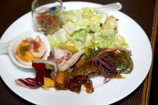 主要餐點共有四個區塊,順序以順時針方向進行,右側為冷盤、沙拉區
