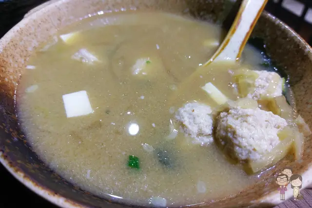 點了兩碗丼飯之外,還加了一碗沖繩手打雞肉丸味噌湯(120元),