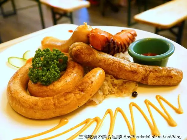 兩個人照店家建議除了豬腳,另外單點了手工肉排以及一份綜合手工香腸盤,
