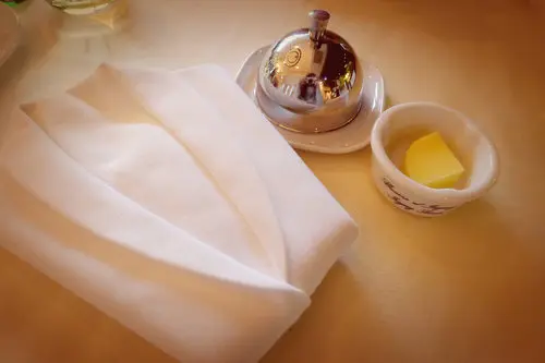 餐巾是很有創意的摺法。讓人不禁莞爾。