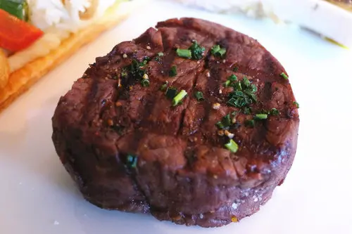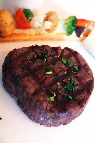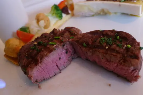 牛排吃起來質地非常軟嫩,烤到恰到好處的嫩度與嚼勁,同樣是牛排但是烹煮的時間與溫度都會影響到肉質的口感。