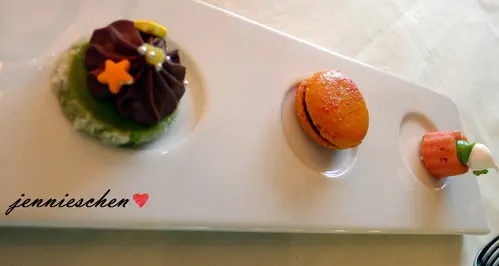 甜點也是繽紛可愛,有巧克力抹茶餅乾、馬卡龍及小蛋糕。