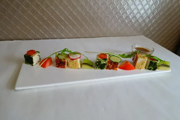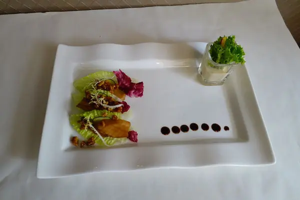 沙拉擺盤的十分雅緻 令人驚豔 友人貼心的與我分享這份美味