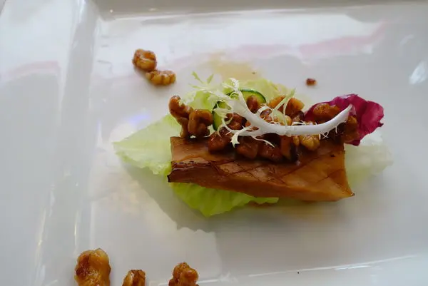 生菜包裹著略有厚度的杏鮑菇及脆香的核桃 清爽好吃 入口也很有咬勁,份量不少 還可以互相分享哦