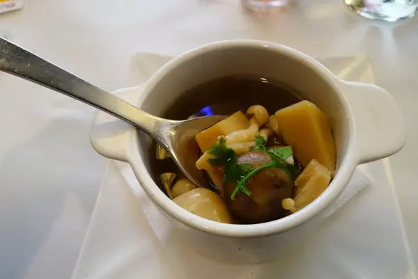 多達四種菇熬煮的湯頭香甜可口 清爽好喝 菇類營養價值也很高