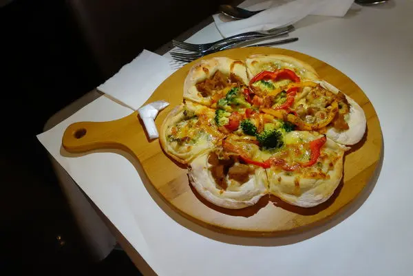 雖然這不是我點的 但卻是今天最喜歡的主餐 披薩外皮酥脆好吃 芝心有滿滿的起司 吃了卻不會膩 更令我驚喜的是居然加了哇沙米 味道重但卻不會嗆辣 反而幫披薩加分