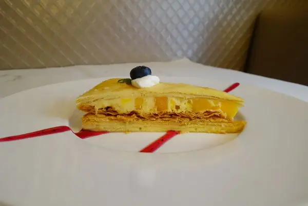 外皮軟 夾層有新鮮芒果 & 卡士達醬 像吃冰淇淋一樣的口感 甜度也能接受