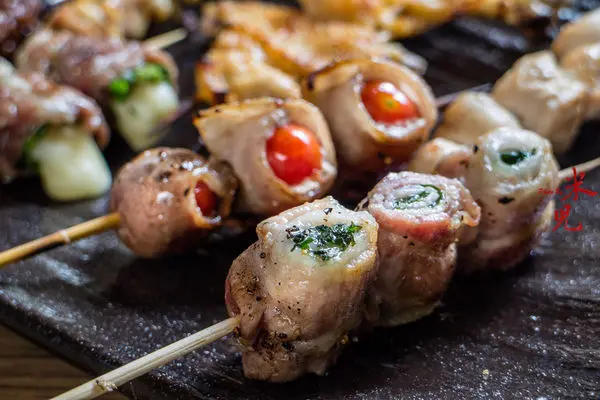 串燒系列,一串70大洋起。除了雞肉之外,也提供各種創意串燒,像是以豬五花卷著青紫蘇、小番茄等等,還有卷上三星蔥與起司的獨特吃法,不加太多醬料,吃得就是食材的原始美味,會讓人一口接一口!因為口味很多,建議多揪些人才能吃更多種類!