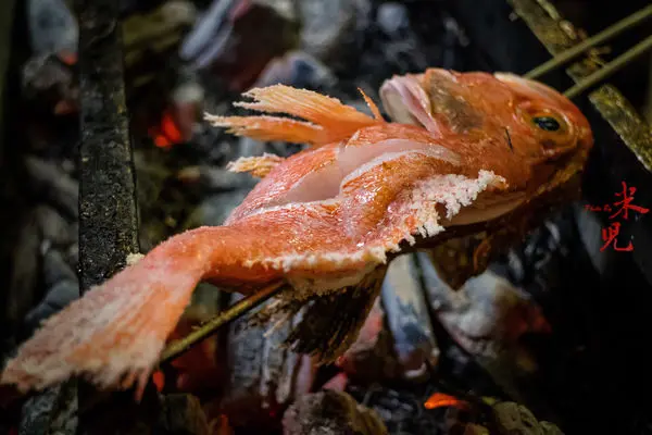 現流海魚,時價。特別從基隆崁仔頂採購的海釣魚獲,每日不同,這天幸運地吃到我喜歡的石狗公,只以鹽烤的方式處理,在炭火上直火慢烤出噴香的滋味,看那蹦開的魚肉,就知道鮮度十足啊!!!